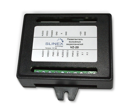 Slinex VZ-20 - Разветвитель вызывных видеопанелей Slinex предназначен для расширения домофонной системы за счет подключения к входу абонентского монитора двух вызывных панелей. Если монитор поддерживает подключение двух вызывных панелей, один разветвитель добавляет третью, а второй — четвертую.Характеристики:Совместимость со всеми 4-проводными аналоговыми вызывными панелями (Slinex, Kocom, Commax etc).Чувствительность вызова — не менее 1 В.Коммутируемый ток по каналам Video, Audio, Power и x-channel — до 2 А; 24 В.Питание — DC 10 ~ 15 В, 50 мА. Потребляемая мощность — 0.5 Вт. Размер — 76?58?27 мм.