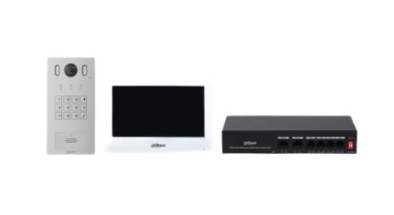 Dahua DHI-KTP05(F) - Комплект: DHI-VTO3221E-P: IP вызывная панель 2Мп DHI-VTH2621GW-WP: IP 7" монитор видеодомофона с WiFi DH-PFS3006-4ET-36: 4-портовый неуправляемый коммутатор с РоЕ VTM116: монтажная коробка для врезного...