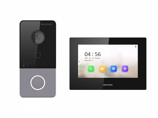 Hikvision DS-KIS605-P (C) - Комплект IP видеодомофона с Wi-Fi В состав входят устройства: 1 DS-KV6113-WPE1 (C) 1 DS-KH6320-LE1 (B) 2 блока питания Полная поддержка Hik-connect
