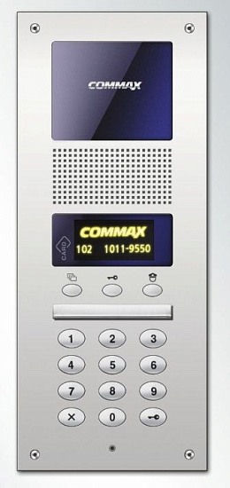 Commax DR-2AG - переговорное устройство с кодовой цифровой панелью,связь с охраной или с квартирой, программирование системы, управление замком,питание 12 В/500мА, размер130х315х10(38) мм