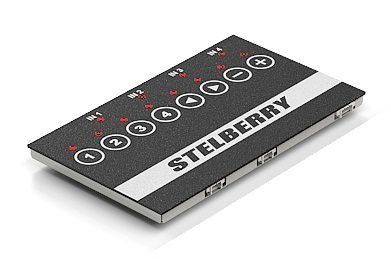 STELBERRY MX-320 - Профессиональный 4-канальный цифровой аудиомикшер с сенсорным управлением и для смешивания аудиосигналов с микрофонов. Позволяет подавать на выход любую комбинацию каналов. Регулировка любого из каналов, при отключенных остальных, позволяет более точно настроить каждый из аудиоканалов. Уровень входного/выходного аудиосигнала 0...1 В, частота пропускания 20...30 000 Гц, диапазон регулировки усиления -70...+20 дБ (2 дБ), питание (в т.ч. для подключенных микрофонов) 12...16 В, 50 мА, 100х60х6 мм
