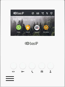 Описание: BAS-IP AU-04LA WHITE - Видеодомофон индивидуальный, с сенсорным экраном 4,3”, c памятью (фото), с возможностью подключения датчиков сигнализации, аудиоинтерком между домофонами, умный дом. Подключение кнопки звонка. Просмотр 8 IP камер. Возможность подключения дополнительной трубки SP-AU. Питание: PoE и + 12В (БП в комплект не входит). Поддержка SIP P2P. Размер: 135х185х30 мм. Цвет - белый.