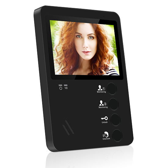 AltCam VDP431(B) - Экран 4,3 дюйма, механические кнопки. Подключение 2-х вызывных панелей, PAL/NTSC. Регулировка громкости звонка, разговора, яркости. Дополнительный разъем для внешнего БП DC 12V, Габариты 120x20x170 мм. Вес 550 гр. Цвет черный, Блок питания встроенный AC100V~240V