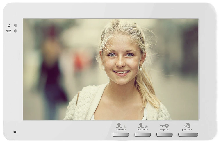 AltCam VDP71(W) - Экран 7 дюймов, механические кнопки. Подключение 2-х вызывных панелей, PAL/NTSC. Регулировка громкости звонка, разговора, яркости. . Дополнительный разъем для внешнего БП DC 12V. Габариты 195х120х20 мм. Вес 950 гр. Блок питания встроенный AC100V~240V, цвет белый