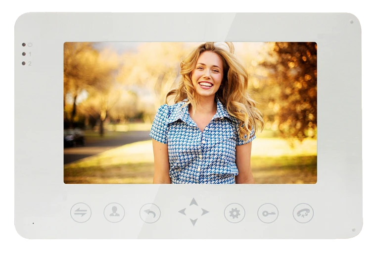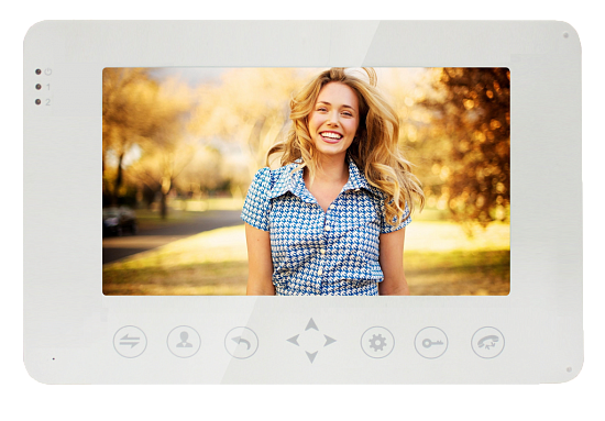 AltCam VDP71M(W) - Экран 7 дюймов. Подключение 2-х вызывных панелей и 2 камер, PAL/NTSC. Сенсорные кнопки. Интерком до 4-х устройств, запись фото и видео. Память встроенная 128Мб (только фото). Запись по детектору движения на 1 канал. Поддержка Micro-SD карт до 32 Гб. Регулировка яркости, цвета и контрастности. Русифицированное OSD меню. Габариты 185x125x20 мм. Вес 950 гр. Блок питания встроенный AC100V~240V, цвет белый