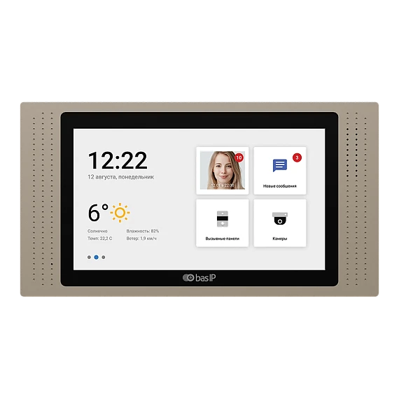 BAS-IP AT-07L GOLD - Видеодомофон индивидуальный. Дисплей: 7” IPS, сенсорный емкостный, разрешение 1024x600. Операционная система: Android 6.0. Без камеры. Внутренняя память (снимки гостей), слот для MicroSD карты (до 32...
