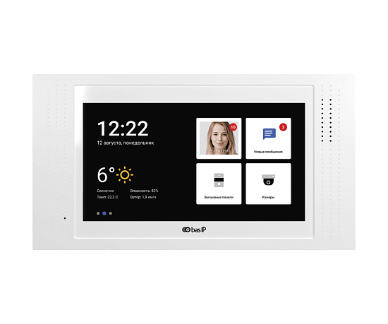Абонентский монитор BAS-IP AT-10 white для IP-видеодомофона оснащен двумя 4-ядерными процессорами, цветным сенсорным емкостным 10" IPS LCD-дисплеем с разрешением 1280×800, слотом для microSD-карты емкостью до 32 Гбайт, камерой (отключаемой), динамиком, микрофоном, портами microUSB, RJ-45, RS-485. Поддерживает подключение до 9 вызывных панелей, 32 IP-камер, 8 синхронизированных мониторов, 8 датчиков безопасности (16 с модулем расширения SH-16).