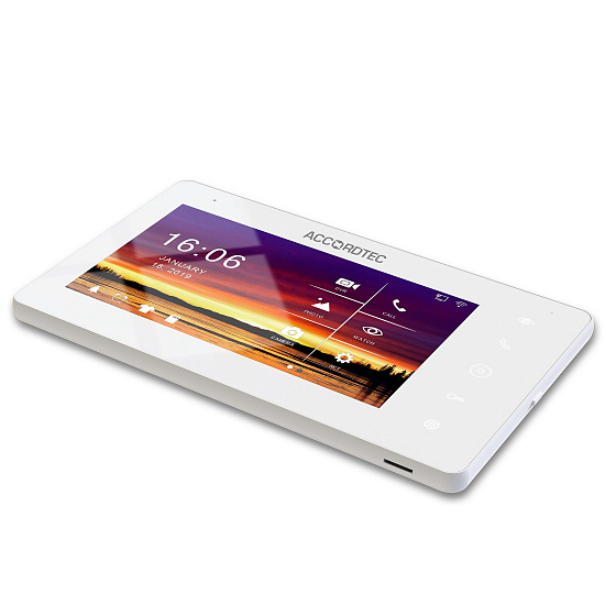 AccordTec AT-VD720W WH - Видеодомофон 7", WI-FI, LAN. Удалённое подключение к монитору через приложение Tuya Smart для Android и IOS. Сенсорные кнопки, 1080P/720P/CVBS Подключение двух вызывных панелей и двух видеокамер.Календарь, будильник. Загрузка собственных мелодий MP3 в качестве сигнала вызова домофона. Запись видеороликов входящего вызова со звуком в автоматическом или ручном режимах, и по детектору движения. Поддержка micro SD карт (8Гб-128Гб).Адресный интерком. Накладной тип крепления. АС 220В.Цвет корпуса:белый.Габаритные размеры: 216 х 129 х 10 мм. Совместим со всеми вызывными панелями.