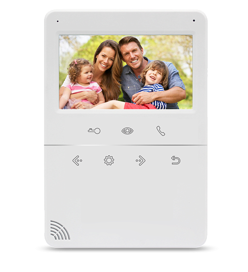 Абонентский монитор AccordTec AT-VD 432C WH для аналогового видеодомофона рассчитан на подключение двух 4-проводных вызывных панелей и двух дополнительных камер, канала интеркома. Оборудован цветным 4.3-дюймовым дисплеем (480×272), сенсорными кнопками, микрофоном и динамиком.