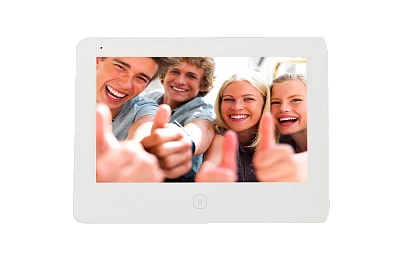 AccordTec AT-VD 770W WH - Видеодомофон. (Монитор видеодомофона, 7 дюймов, поддержка 1080Р, сенсорный экран, поддержка POE, WIFI, IP, поддержка SD карты до 128 ГБ, запись фото и видео, детектор движения, до 10 мониторов в системе, 8 адресов для вызывных панелей и камер, будильники, часы, цвет корпуса - белый). Питание 15 В, 0,8 А или РОЕ.