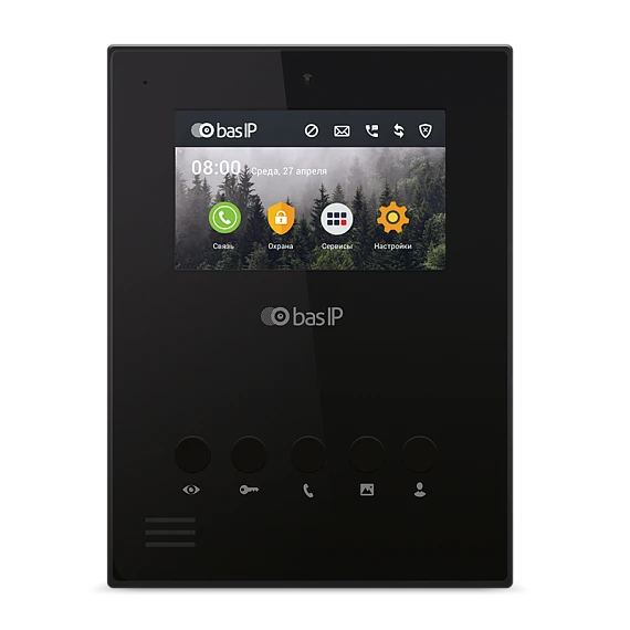 BAS-IP AU-04LAF BLACK - Видеодомофон индивидуальный. Wi-Fi: 2,4 ГГц (IEEE 802.11n). Дисплей: 4” TFT, сенсорный емкостный, разрешение 480x272. Операционная система: Linux. Без камеры. С возможностью подключения датчиков...