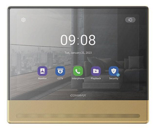 Commax CDV-1004QT/VZ (Золото) - 10,0" видеомонитор, дополнительно вызов аудио/видео (при наличии камеры) от координатного подъездного домофона, подключение подключение одной вызывной панели, 2-х видеокамер и трубки DP-4VHP, встроенный модуль Wi-Fi, переадресация вызова на смартфон (возможно до 4-х штук), ( iOS, Android); память до 128Gb, запись фото или видео (принудительно и по детекции движения), охранные функции, меню на русском языке, AC 110-240В , 250*210*22