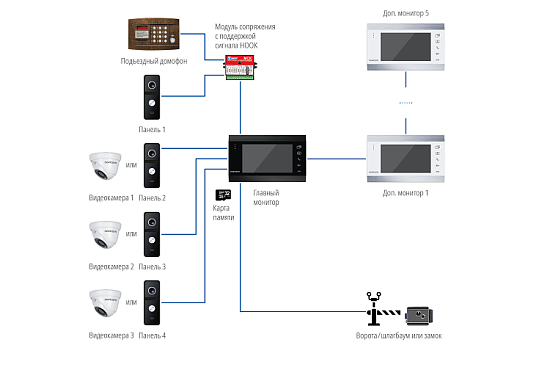 Мониторы Novicam DARK MAGIC 7 HD предназначены для организации домофонной аудио и видео системы. Устанавливаются совместно с вызывными панелями и позволяют осуществлять голосовую и видеосвязь. Novicam DARK MAGIC 7 HD поддерживает до 4 HD или аналоговых вызывных панелей. Современный 7" ЖК-дисплей дает красочное изображение. Встроенные микрофон и динамик обеспечивают качественную двустороннюю аудиосвязь. К монитору можно подключить до 5 дополнительных мониторов или использовать его в качестве дополнительного к другим совместимым мониторам Novicam. При подключении нескольких мониторов становится доступной функция адресного интеркома. Это позволяет общаться в пределах одной системы, а также переадресовывать вызов с внешней панели на другой монитор. Кроме этого, видеодомофон может использоваться в качестве устройства видеонаблюдения и охраны. Для этого к нему могут быть подключено до 3 видеокамер. Для активации записи потребуется установить MicroSD карту памяти в специальный слот. Запись видео может осуществляться по детектору движения, вручную или при нажатии кнопки на вызывной панели. Монитор имеет встроенный блок питания, что существенно упрощает подключение. Также имеется возможность питания домофона от резервированного источника питания DC 12-15В. Данный видеодомофон полностью адаптирован для работы с подъездными многоквартирными системами типа Vizit, Cyfral, Eltis, Метаком, Сейф-Сервис, Даксис, Proel, Laskomex, Keyman-Polylock и Маршал-Raikmann через соответствующий модуль сопряжения. Видеодомофон Novicam DARK MAGIC 7 HD станет незаменимым помощником по обеспечению безопасности и контроля доступа в магазинах, складах, квартирах, загородных домах, офисах и прекрасно впишется в любой интерьер. СПЕЦИФИКАЦИИ: