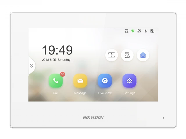 Hikvision DS-KH6320-LE1/White (B) - 7“ IP видеодомофон Сенсорный 7" TFT LCD экран 1024*600; встроенные микрофон и динамик; тревожный вход 8; 10M/100M Ethernet; DC12В/PoE; 6Вт; 0 °C...+55°C; 200 × 140 × 15.1 мм