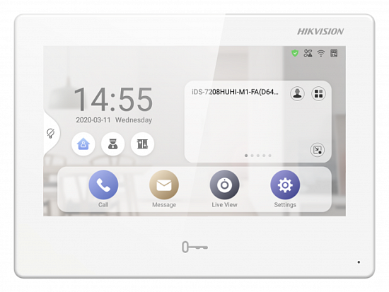 Hikvision DS-KH9310-WTE1 (B) - 7'' видеодомофон DS-KH9510-WTE1 (ОС Android 10.0) 7″ цветной TFT-сенсорный экран, разрешение 1024 × 600, емкостный сенсорный экран/кнопки; Встроенный всенаправленный микрофон и динамик с...