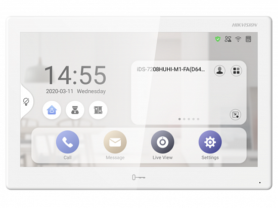 Hikvision DS-KH9510-WTE1 (B) - 10'' видеодомофон DS-KH9510-WTE1 (ОС Android 10.0) 10.1″ цветной IPS-сенсорный экран, разрешение 1024 × 600, емкостный сенсорный экран/кнопки; Встроенный всенаправленный микрофон и динамик с...