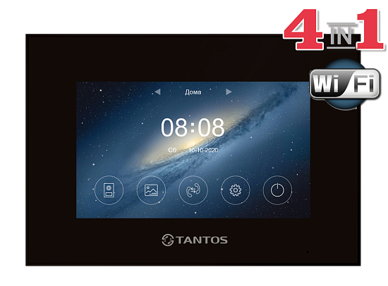 Tantos Marilyn HD Wi-Fi IPS (black) - Монитор цветного видеодомофона 7 дюймов, с поддержкой форматов CVBS и 720p/1080p (AHD/CVI/TVI), емкостной сенсорный экран IPS, разрешение 1024x600, hands free. Супертонкий корпус со стеклянной...