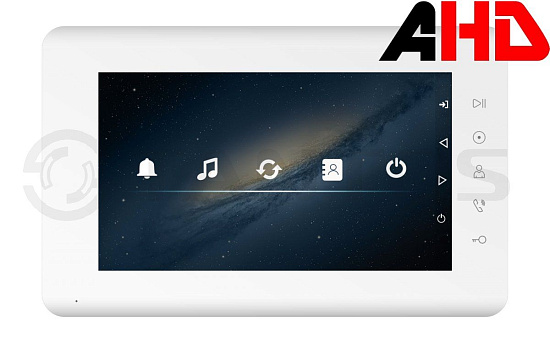 Tantos Mia HD (White) VZ - Бюджетный монитор цветного видеодомофона 7 дюймов с сенсорными кнопками, с поддержкой форматов CVBS и 720p/1080p(AHD/CVI/TVI), разрешение 800х480, hands free. Питание 220В. Габариты: 205х128х18мм.