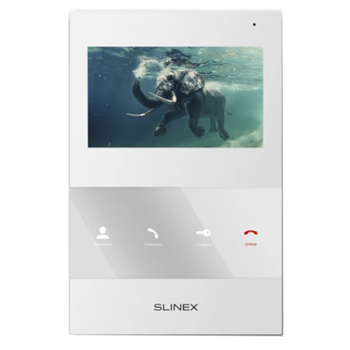 Slinex SQ-04M White - Цветной, настенный, 4.3" TFT LCD дисплей 16:9, разрешение экрана 480х272. Подключение 2-х вызывных панелей и 2-х видеокамер. Запись фото или видео на microSD карту до 32 ГБ. Программная детекция движения....