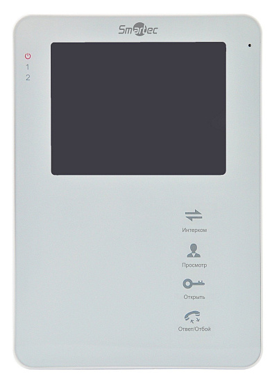 Smartec ST-MS204M-WT - Монитор видеодомофона 4", 4-х проводная линия связи, поддержка 2-х панелей вызова, поддержка 3 доп. мониторов, поддержка 2 доп. камер и охранных датчиков, фото/видео запись, поддержка SD карт памяти, встроенный блок питания, белый