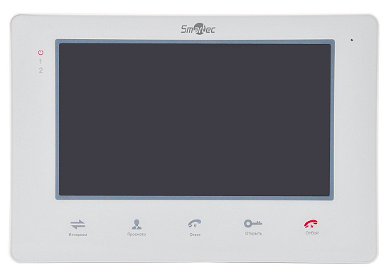 Smartec ST-MS207M-WT - Монитор видеодомофона 7", 4-х проводная линия связи, поддержка 2-х панелей вызова, поддержка 3 доп. мониторов, поддержка 2 доп. камер и охранных датчиков, фото/видео запись, поддержка SD карт памяти, встроенный блок питания, белый