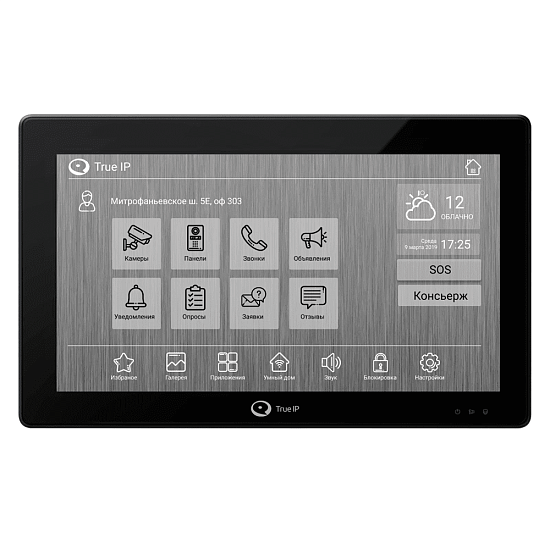 True-IP TI-4107AB (AW) - Android 10 ● WiFi ● 7”, сенсорный, 1024*600 ● Hands Free ● RAM 1Gb | Flash 8 GB ● RJ45 (TCP/IP) ● белый/черный ● управление до 4 объектов ● установка приложений ● прием объявлений, уведомлений, консьерж-чат, голосования, сервисные заявки, автоматическая система настройки - при подключении к серверу T-nect ● журнал событий ● отображение погоды, города и времени ● подключение кнопки звонка ● ответ, отбой вызова, открывание двери голосом ● фоторамка ● телефонная книга ● Internet браузер ● возможность обновлений ● возможность проектной кастомизации ● возможность работы в книжной или альбомной ориентации ● PoE 802.3af или 12VDC/0,7А ● 181*130 *14,4 (мм) ● Совместимость с «Умный дом» - True IP, Mimismart, Leiberit ● врезной монтаж