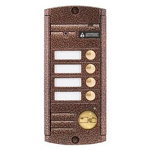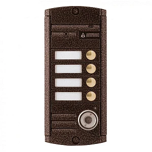 Описание: Activision AVP-454 (PAL) Антик - Вызывная видеопанель на 4 абонента, 4-х проводная, антивандальная, накладная. ИК подветка до 0,6 м. Матрица 1/3", 1000 ТВл, угол обзора: 75° (гор.), 55° (верт.). Питание 12 В. Материал: алюминиевый сплав, покрытый ударопрочной порошковой краской. Рабочий диапазон температур: -50…+55°С. Габариты: 155×70×20 мм. Цвет: антик. Комплектация с козырьком и угловым кронштейном.