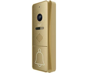 Описание: CTV-D4004FHD (Золото) Вызывная панель для видеодомофона, объектив fish eye, ИК-фильтр для "ночного" режима, подсветка кнопки вызова, блок управления замком (БУЗ) и монт. уголок в комплекте, цв. графит/золото/серебро