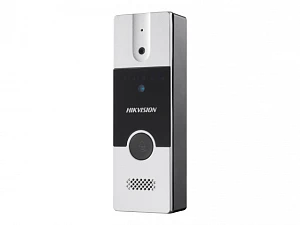 Описание: Hikvision DS-KB2411T-IM - 4-х проводная аналоговая вызывная панель Вызывная панель с камерой разрешением 1920 х 1080, 4-х проводная схема, 12В DC (питание от монитора), реле для подключения замки;