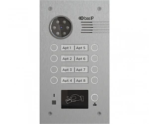 Описание: BAS-IP BA-08MD SILVER - Вызывная панель на 8 абонентов. Считыватель карт и брелоков по стандарту Mifare® Plus и Mifare® Classic. Цифровая IP камера: 2 Мп. Угол обзора 100°. Возможность поворота камеры ± 15°. Врезной монтаж. Накладной монтаж - опционально (кронштейн BR-BA). Степень защиты: IP65. Температурный режим: -40 до +65°C. Отдельная кнопка вызова консьержа. Питание: PoE 802.3af и +12В. Поддержка SIP P2P, Выход Wiegand 26, 32, 34, 37, 40, 42, 56, 58, 64 бит, RS485. Размер: 155х270х50 мм. Гарантия - 5 лет. Открытый API, поддержка ПО Link.