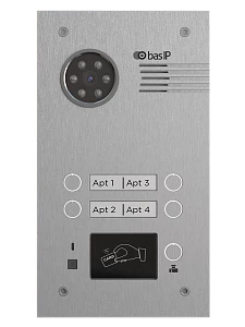 Описание: BAS-IP BA-04MD SILVER - Вызывная панель на 4 абонента. Считыватель карт и брелоков по стандарту Mifare® Plus и Mifare® Classic. Цифровая IP камера: 2 Мп. Угол обзора 100°. Возможность поворота камеры ± 15°. Врезной монтаж. Накладной монтаж - опционально (кронштейн BR-BA). Степень защиты: IP65. Температурный режим: -40 до +65°C. Отдельная кнопка вызова консьержа. Питание: PoE 802.3af и +12В. Поддержка SIP P2P, Выход Wiegand 26, 32, 34, 37, 40, 42, 56, 58, 64 бит, RS485. Размер: 155х270х50 мм. Гарантия - 5 лет. Открытый API, поддержка ПО Link.