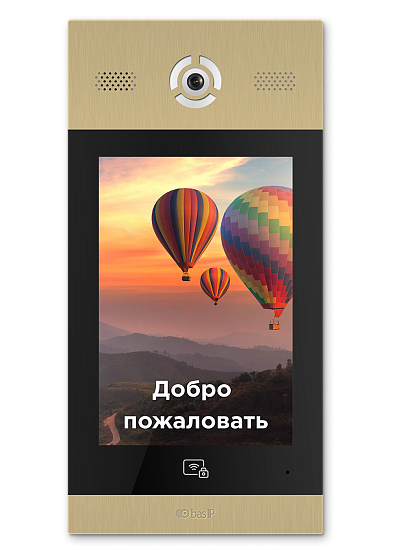 BAS-IP AA-14FB GOLD - Вызывная видеопанель многоабонентская. Цветная IP камера: 1.3 Мп. Угол обзора 120°. 10“ TFT экран с подсветкой и подогревом. Встроенное реле. Поддержка технологии "UKEY": считывание карт, брелоков и мобильных идентификаторов по стандартам EM-Marin, Mifare® Plus и Mifare® Classic, Bluetooth, NFC. 3D идентификация по распознаванию лиц - 6000 лиц. Память до 10 000 идентификаторов (ключей). Степень защиты: IP 65. Температурный режим: -40 до + 65 °C. Врезной монтаж. Питание: + 12В. Поддержка SIP P2P, Выход Wiegand 26, 32, 34, 37, 40, 42, 56, 58, 64 бит, NFC, Bluetooth, RS485. Сенсорные кнопки. Размер: 400х180х45 мм. Цвет - золото. Гарантия - 5 лет. Датчик приближения. Открытый API, поддержка ПО Link.