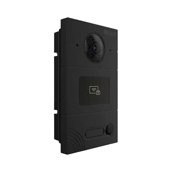 BAS-IP AV-01BD BLACK - Вызывная панель индивидуальная. Цифровая IP камера: 2,0 Мп. Угол обзора 90°. Врезной/накладной монтаж. Оригинальный дизайн. Степень защиты: IP65. Температурный режим: -40 до +65 °C. Поддержка технологии "UKEY": считывание карт, брелоков и мобильных идентификаторов по стандартам EM-Marin, Mifare® Plus и Mifare® Classic, Bluetooth, NFC. Память до 20 000 идентификаторов (ключей). Питание: PoE 802.3af и + 12В. Поддержка SIP P2P, Выход Wiegand 26, 32, 34, 37, 40, 42, 56, 58, 64 бит, RS485. Механическая кнопка. Размер: 115×190×45 мм.
