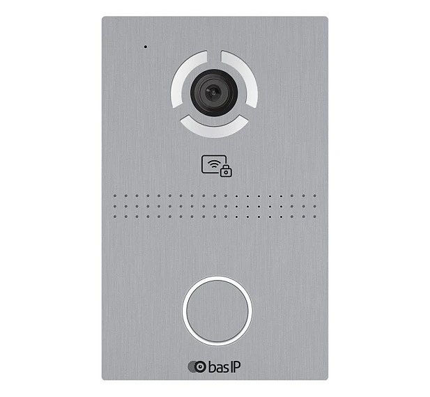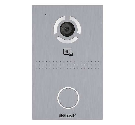 BAS-IP AV-03BD SILVER - Вызывная панель индивидуальная. Цифровая IP камера: 1Мп. Угол обзора 100°. Пластиковый корпус. Накладной монтаж. Оригинальный дизайн. Степень защиты: IP40. Температурный режим: -10 до + 65°C. Поддержка технологии "UKEY": считывание карт, брелоков и мобильных идентификаторов по стандартам EM-Marin, Mifare® Plus и Mifare® Classic, Bluetooth, NFC. Память до 10 000 идентификаторов или карт. Питание: + 12В и PoE. Поддержка SIP P2P, Выход Wiegand 26, 32, 34, 37, 40, 42, 56, 58, 64 бит, RS485. Сенсорная кнопка вызова. Размер: 102×160×46 мм. Цвет - серебро.