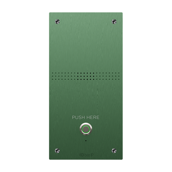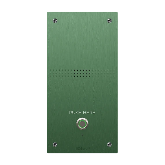 BAS-IP AV-04AFD GREEN - Специализированная вызывная аудио-панель. Врезной монтаж. Степень защиты: IP65. Температурный режим: -40 до + 70 °C. Питание PoE и + 12 В. Поддержка: SIP P2P, RS485, кнопка выхода, датчик двери....