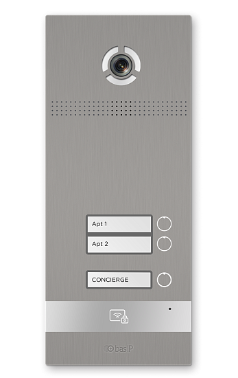 BAS-IP BI-02FB SILVER - Вызывная панель на 2 абонента. Поддержка технологии "UKEY": считывание карт, брелоков и мобильных идентификаторов по стандартам EM-Marin, Mifare® Plus и Mifare® Classic, Bluetooth, NFC. 3D идентификация по...