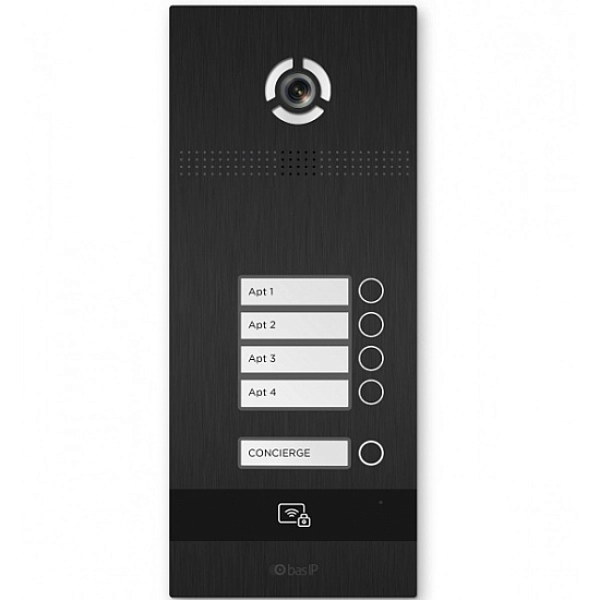 BAS-IP BI-04FBI BLACK - Вызывная панель на 4 абонента. Поддержка технологии "UKEY": считывание карт, брелоков и мобильных идентификаторов по стандартам EM-Marin, Mifare® Plus и Mifare® Classic, Bluetooth, NFC. 3D идентификация по...