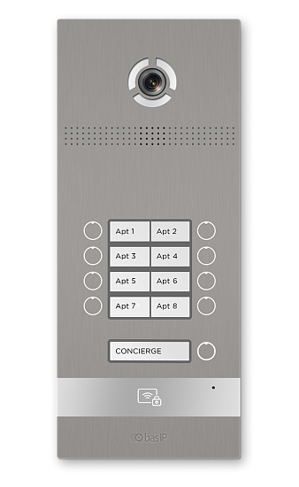 BAS-IP BI-08FB SILVER - Вызывная панель на 8 абонентов. Поддержка технологии "UKEY": считывание карт, брелоков и мобильных идентификаторов по стандартам EM-Marin, Mifare® Plus и Mifare® Classic, Bluetooth, NFC. 3D идентификация по...