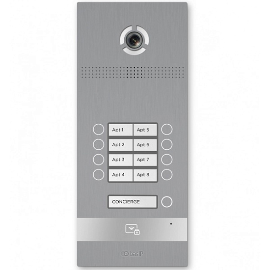 BAS-IP BI-08FBI SILVER - Вызывная панель на 8 абонентов. Поддержка технологии "UKEY": считывание карт, брелоков и мобильных идентификаторов по стандартам EM-Marin, Mifare® Plus и Mifare® Classic, Bluetooth, NFC. 3D идентификация по...