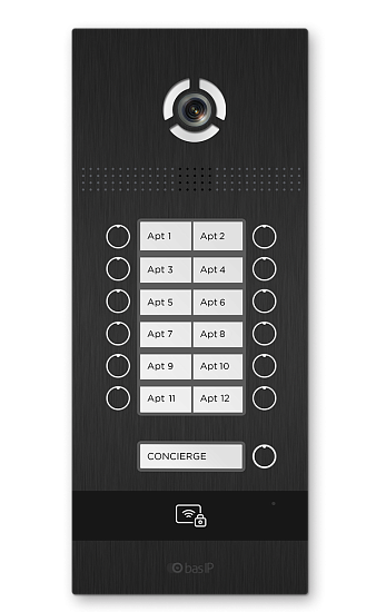 BAS-IP BI-12FB BLACK - Вызывная панель на 12 абонентов. Поддержка технологии "UKEY": считывание карт, брелоков и мобильных идентификаторов по стандартам EM-Marin, Mifare® Plus и Mifare® Classic, Bluetooth, NFC. 3D идентификация по...