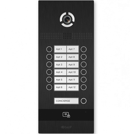 BAS-IP BI-12FBI BLACK - Вызывная панель на 12 абонентов. Поддержка технологии "UKEY": считывание карт, брелоков и мобильных идентификаторов по стандартам EM-Marin, Mifare® Plus и Mifare® Classic, Bluetooth, NFC. 3D идентификация по...