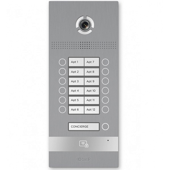 BAS-IP BI-12FBI SILVER - Вызывная панель на 12 абонентов. Поддержка технологии "UKEY": считывание карт, брелоков и мобильных идентификаторов по стандартам EM-Marin, Mifare® Plus и Mifare® Classic, Bluetooth, NFC. 3D идентификация по...
