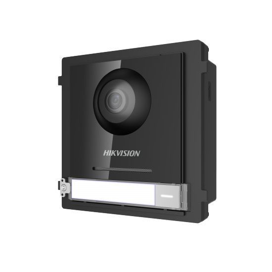 Основной модуль Hikvision DS-KD8003-IME1 для сборной вызывной панели поддерживает подключение до восьми дополнительных модулей или работает как самостоятельное устройство. Укомплектован 2 Мп (1920×1080) камерой с Fisheye-объективом: угол обзора по горизонтали — 180°, вертикали — 96°. Стабильно работает на улице в диапазоне температур -40 °C… +60 °C, пыле- и влагозащита соответствуют стандарту IP65.