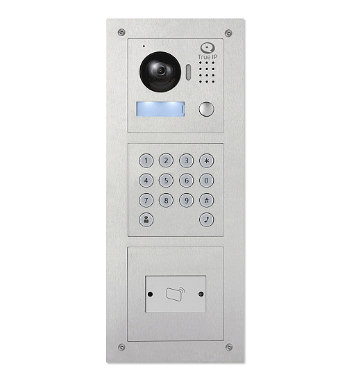 True-IP TI-2308M/M - Вызывная панель модульной конструкции из нержавеющей стали. Позволяет подобрать необходимый вариант домофона путем комбинации главного модуля c модулями: клавиатуры, считывателя Mifare, считывателя отпечатка пальцев, однокнопочного, трёхкнопочного, пятикнопочного и модуля заглушки в котором можно разместить дополнительную информацию. Совместимость с АТС на базе Asterisk.