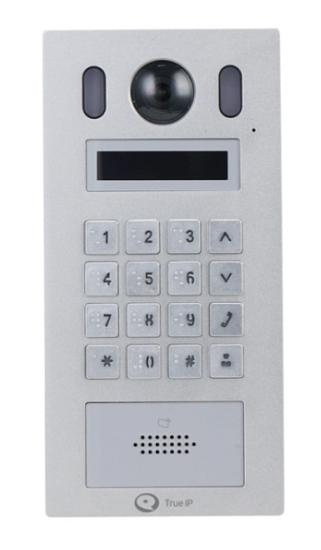 True-IP TI-3220WD - Многоабонентная вызывная панель рассчитана на уличную эксплуатацию в любое время года: защита корпуса от пыли и влаги соответствует стандарту IP65, от механических воздействий - IK08, рабочие температуры - -40 ?С… +60 ?С. Оборудована цветной встроенной IP-камерой, считывателем карт Mifare, однострочным дисплеем, механической кодонаборной клавиатурой, кнопкой вызова. Вместимость памяти - 10 000 карт.Характеристики камеры:Матрица - CMOS 1/2.9".Разрешение - 2 Мп.Объектив 3.6 мм с углом обзора по горизонтали - 138?, диагонали - 158?.Функция день/ночь с электронным ИК-фильтром.Компенсация засветки.Компрессия видео кодеком H.264.Двухпотоковая трансляция.Скорость трансляции потока - 25 к/с.Функциональность:Предоставление доступа по сигналу абонентского монитора или в результате идентификации по цифровому коду и карте.Управление замком или двумя замками (через модуль расширения TI-1SR).Аудио- и видеовызовы на включенные в домофонную сеть мониторы, пульт консьержа, компьютеры, SIP-телефоны, мобильн