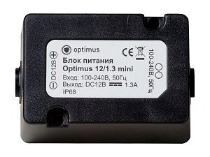 Описание: Optimus Блок питания 12/1.3 mini - 12В, 1,3А, IP68. Входное напряжение переменное от 160 до 242В, частота 50Гц, постоянное выходное напряжение 12-12,4 В, напряжение пульсаций (от пика до пика) не более 30мВ, номинальный выходной ток не более 1,3А, масса 0,094кг, время наработки на отказ 100 0 часов, класс защиты от поражения эл.током 2. Компактный корпус 56х39х26мм, позволяет установку в любом месте,даже под штукатурку. Рабочая температура от -30 до +40°С, IP68. 56х39х26 мм