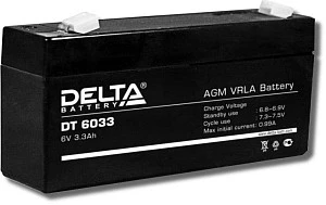 Описание: Delta DT 6033 - Свинцово-кислотный, герметичный аккумулятор, 6В/3,3Ач, ножевые клеммы 4,8 мм (F1), 134х34х61мм, 0,65 кг