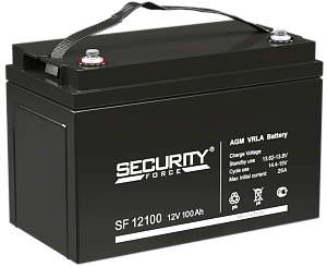 Описание: Security Force SF 12100 - Свинцово-кислотная аккумуляторная батарея высокой емкости (100 А∙ч). Предназначена для обеспечения питанием 12 В постоянного тока. Электролит абсорбированный (технология AGM).