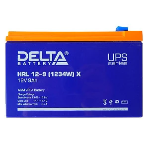 Описание: Delta HRL 12-9 Х (1234W) - Свинцово-кислотный, герметичный аккумулятор, 12В/9Ач, ножевые клеммы 6,35 мм (F2), 151х65х94мм, 2,8 кг
