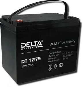 Описание: Delta DT 1275 - Свинцово-кислотный, герметичный аккумулятор, 12В/75Ач, клеммы под болт с гайкой 8 мм, 260х169х211мм, 23кг